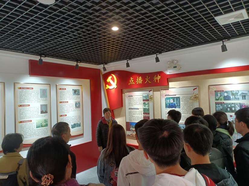 展厅第二部分是“庙上新火”,李厚林书记为大家解读了革命先辈在抗战时期的英雄事迹,在革命先烈在被敌人前后包夹的情况下,也不放弃不投降,英勇无畏。李厚林老师指出我们现在的幸福生活是前辈们抛头颅、洒热血拿生命换来的,我们要珍惜这来之不易的生活。没有他们就没有现在的和平,没有和平就没有现在的幸福,没有和平就没发展。在抗战时期有很多矛盾、很多冲突、很多不平衡,条件很艰辛,展现了革命先烈英勇无畏不怕牺牲奋勇向前的革命精神。作为新时代的中共党员我们更应该珍惜现在的美好生活,认真做好自己的本职工作为更好的明天继续努力,为实现第二个100年继续奋斗,贡献自己的力量。